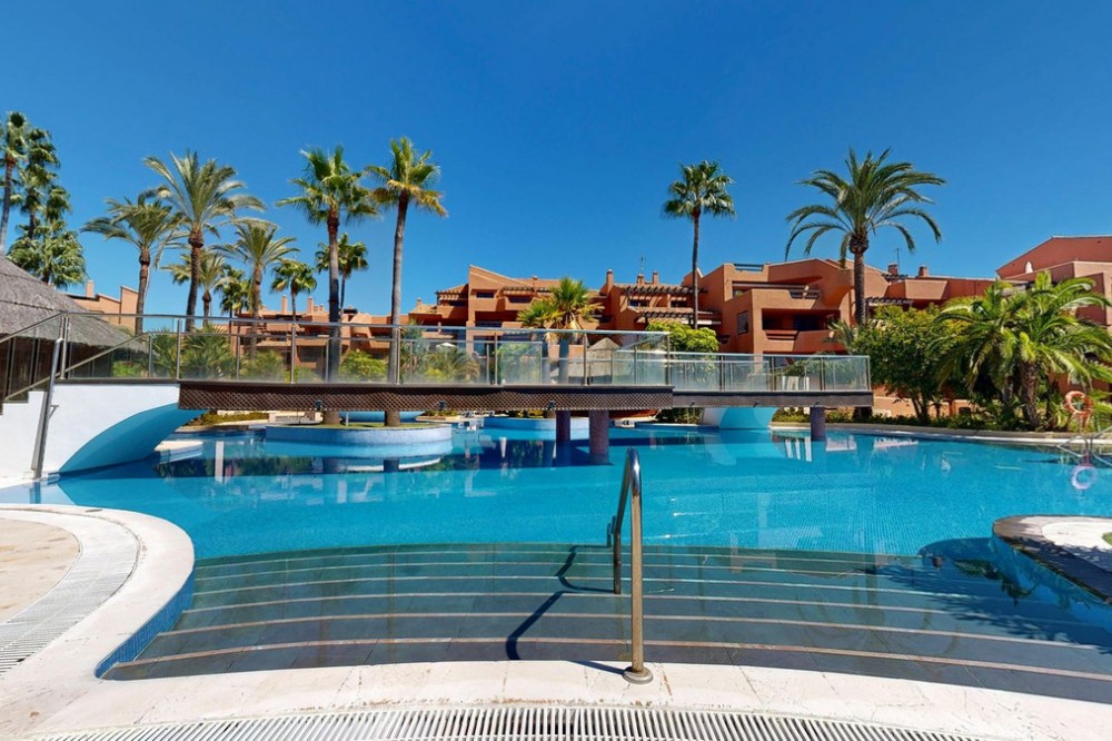 • In the heart of Estepona's New Golden Mile, where the Costa del Sol shows off its most sophisticated side, lies a unique opportunity for those looking to live or invest on the seafront. The Mar Azul development, renowned as one of the most coveted in the area, combines the luxury, comfort, and exclusivity of a five-star resort with the tranquility of a private residence. And within this privileged enclave, a once-in-a-lifetime opportunity now arises: the chance to acquire the most affordable home in the entire complex, at an unbeatable price that makes it a real find. This spacious two-bedroom, two-bathroom apartment offers a bright and functional design that opens onto a large south-facing terrace with direct views of the Mediterranean. Every corner has been conceived to convey spaciousness and well-being, integrating indoor and outdoor living in a natural way. Here, days begin with the sun streaming through the floor-to-ceiling windows and end with the sea breeze as your companion. The Mar Azul residential development is much more than a residential complex: it's synonymous with lifestyle. Its common areas are designed to ensure every day is lived in maximum comfort. Swimming pools surrounded by tropical gardens, a spa, a gym, private security, direct access to the beach, and a carefully curated environment make this space a luxurious retreat. It's no coincidence that it's one of Estepona's most desirable addresses, as it combines what many seek and few find: location, quality, and prestige. The New Golden Mile has established itself as one of the benchmarks in the international real estate market. Between Marbella and Estepona, it boasts some of the most exclusive residential projects on the coast, with first-class services, restaurants, beach clubs, and golf courses that place it on par with the most distinguished areas of the Mediterranean. Living here means having everything within reach, but with the advantage of a quieter and more family-friendly environment than the hustle and bustle of Marbella's center. This apartment is not only an exceptional home, but also an investment with unmatched potential. Its location and features make it a perfect option for short-term vacation rentals, with high demand year-round thanks to the climate and proximity to amenities. However, it is also ideal for long-term rentals for those looking to settle in the area. At the same time, its spaciousness and excellent layout make it a magnificent permanent residence for enjoying a seaside lifestyle twelve months a year. The combination of beachfront location, luxury development, and the most competitive price in the complex makes this property a once-in-a-lifetime opportunity. An opportunity that won't come easily again. If you've always dreamed of living by the sea or investing in one of the most promising areas of the Costa del Sol, now is the time to take the plunge. Don't let it slip away.
