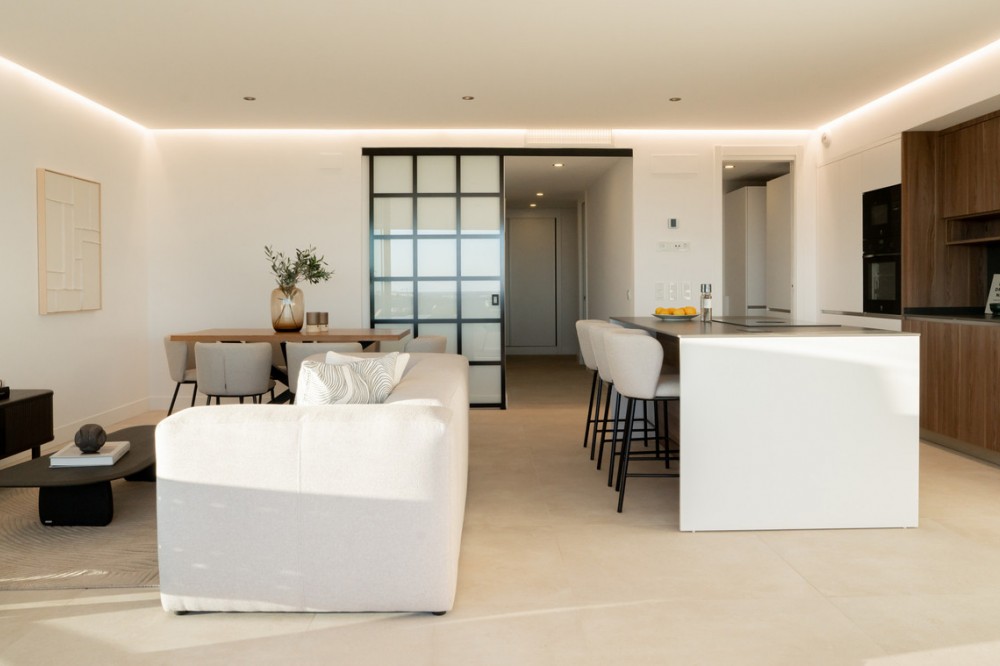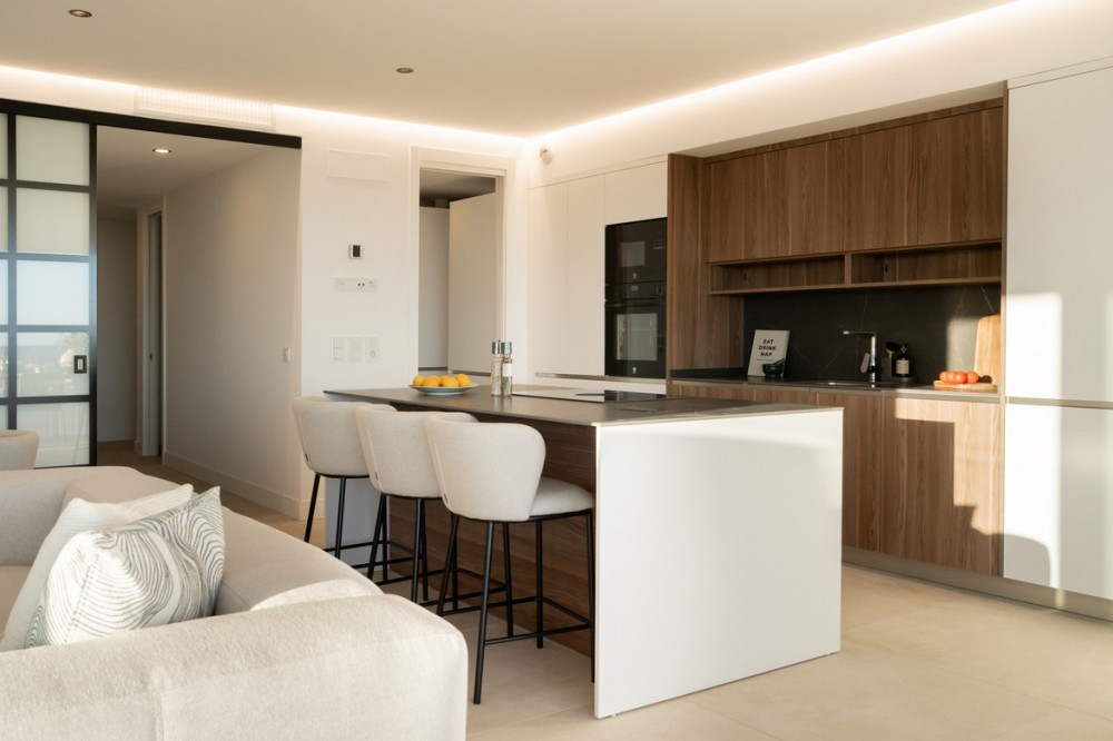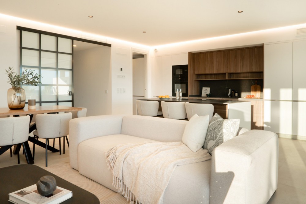 - Welcome to this brand-new, never-lived-in apartment in Mirador de Estepona Hills, one of the most prestigious residential communities in the area of Estepona. Thoughtfully designed for comfort and modern living, this spacious home offers 3 bedrooms and 2.5 bathrooms, including a master suite with en-suite bathroom. The open-plan living and dining area is filled with natural light, flowing seamlessly onto a southwest-facing terrace with sweeping views across Estepona town and the Mediterranean Sea. The apartment is sold fully furnished with elegant, quality pieces that complement the modern aesthetic. A private parking space and storage room are also included, ensuring convenience and practicality. Perfect for someone who would like to purchase this property for short or long term rental investment! Life in Mirador de Estepona Hills is about enjoying a resort-style lifestyle every day. Residents benefit from 24-hour security and concierge service in a gated environment, surrounded by tropical gardens. Amenities include multiple swimming pools, a gym and sauna, padel courts, and an on-site restaurant and bar — all designed to enhance well-being and leisure. With its elevated position, this property offers panoramic views while being just minutes away from Estepona’s charming old town, golden beaches, shopping areas, and a wide range of dining options. For those seeking a brand-new home that combines modern comfort with a resort atmosphere, this apartment represents a rare opportunity in one of Estepona’s most desirable developments.