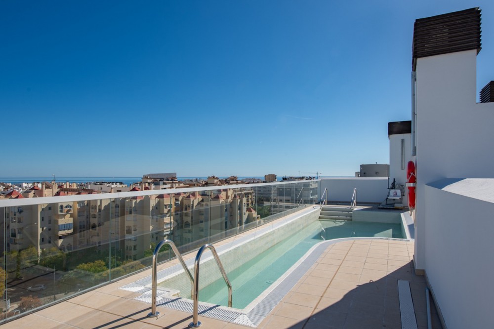 - This beautiful, newly built (2023) apartment is stylishly furnished and ideally located at the edge of Estepona’s historic old town. Offering 2 spacious bedrooms and 2 contemporary bathrooms, the home is designed for comfortable modern living. The open-plan living and dining area opens onto a sunny terrace overlooking a peaceful park, perfect for relaxing or entertaining. The apartment also features a fully equipped, separate modern kitchen with all necessary appliances and amenities, making cooking a true pleasure. Residents enjoy access to a rooftop communal saltwater pool with stunning views, as well as a lift for easy access and an underground parking space included for convenience. Situated just a short walk from the beach, vibrant shops, authentic tapas bars, and all the cultural charm of Estepona’s old town, this property offers the perfect blend of tranquility and accessibility. Everything you need is just steps away.