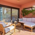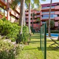 - Ground Floor Apartment for Sale in the New Golden Mile Discover the perfect coastal retreat in this spacious ground floor apartment located on the sought-after New Golden Mile, just a stone's throw from the beach(100 meters). With a generous total area of 163 m², this property features two well-appointed double bedrooms and two large bathrooms, making it ideal for families or those seeking extra space. The exquisite living and dining room opens to two semi-covered terraces, perfect for enjoying the Mediterranean climate. Step outside to your private garden, complete with a staircase leading to lush communal tropical gardens. Enjoy the luxury of outdoor saltwater swimming pools and a range of complex amenities, including a gym, sauna, jacuzzi, and a large heated indoor pool. The apartment also includes a spacious kitchen, laundry room, and ample storage in the basement, along with a private garage space for your convenience. With a fantastic orientation to the east, this apartment is bathed in natural light throughout the day. Additional features include electric central heating, air conditioning, and built-in wardrobes. Located in a well-maintained urbanization with plenty of parking spaces outside, this property is a perfect blend of comfort and luxurity.