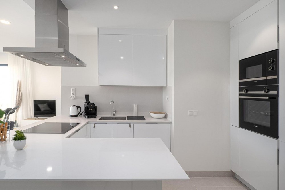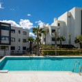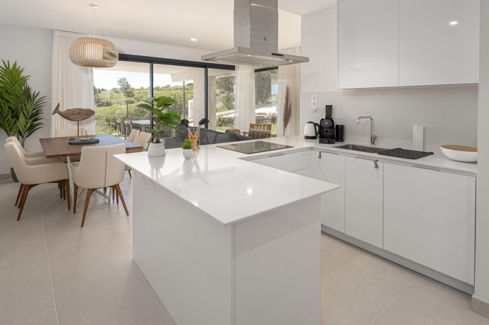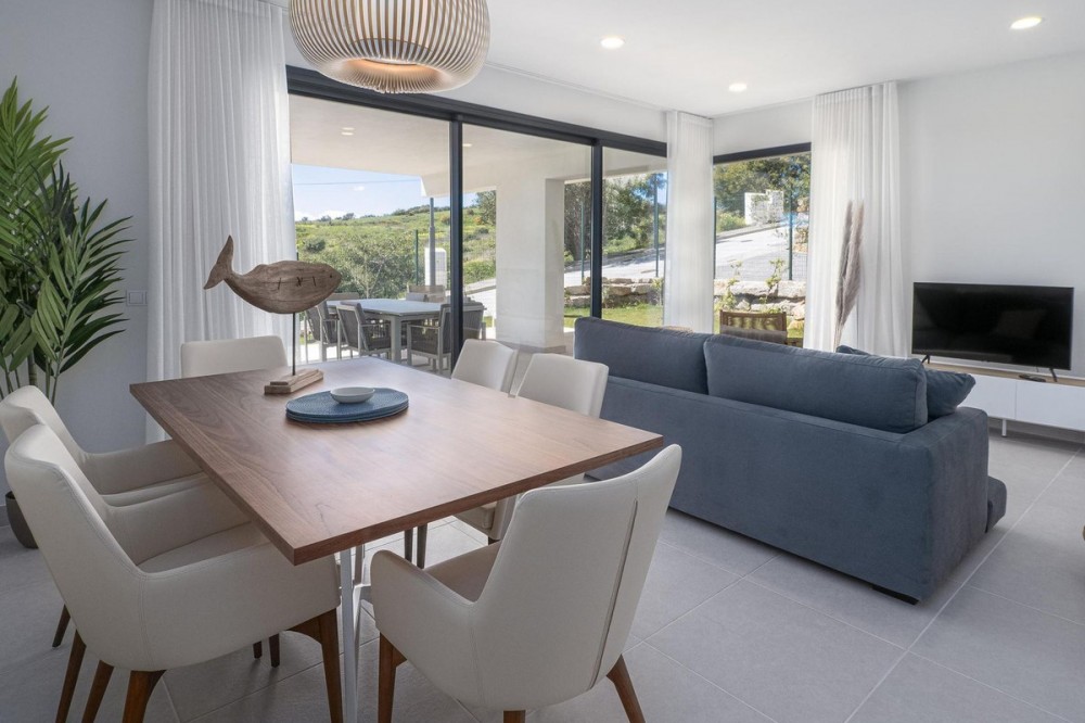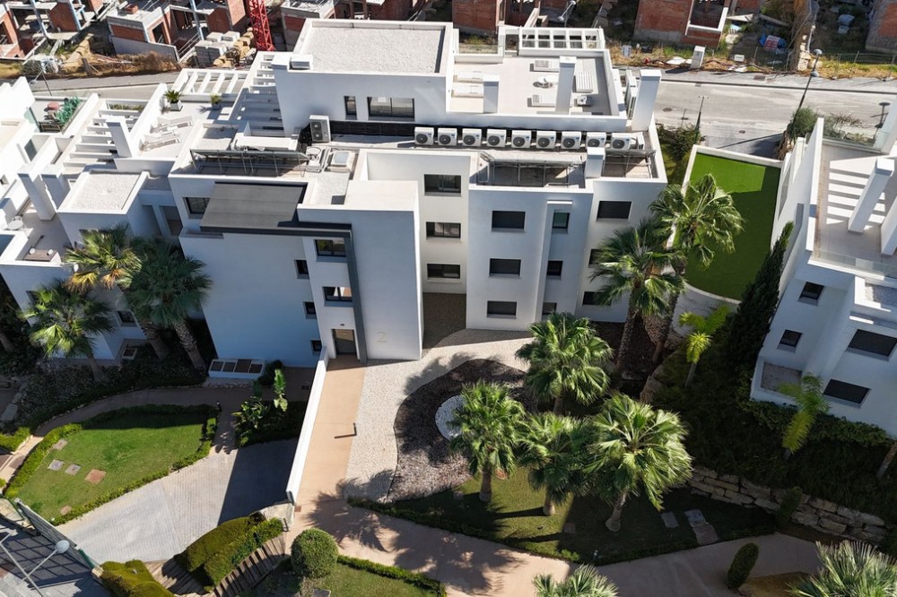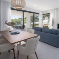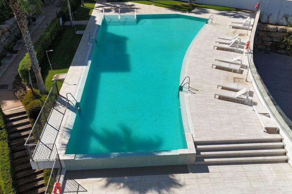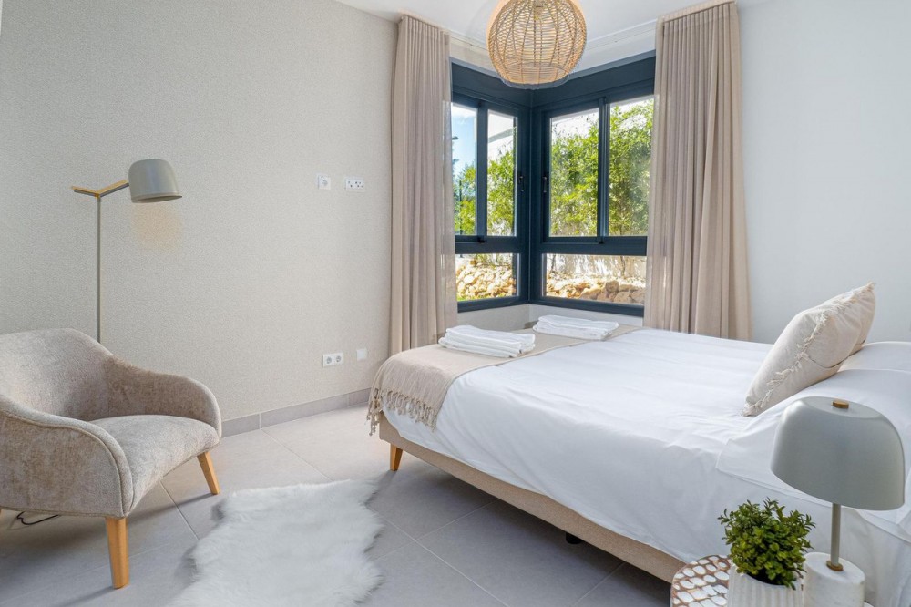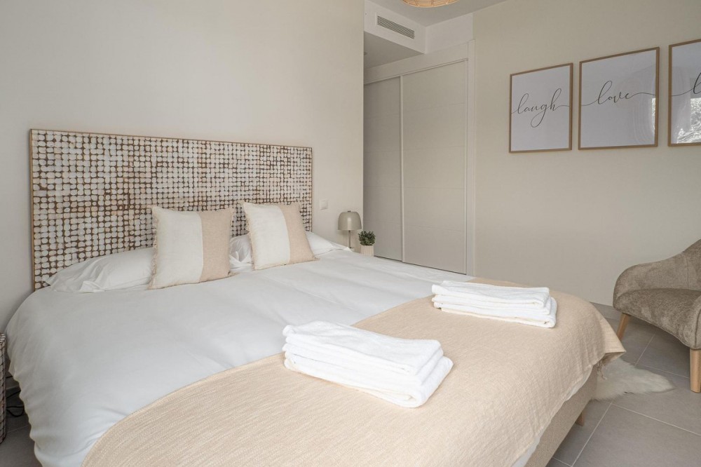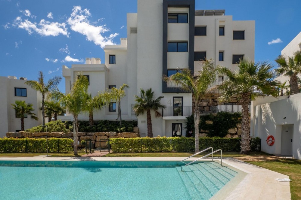 - Exclusive Nearly New 3 Bedroom Apartment in Mirador del Golf – ESTEPONA Welcome to this exceptional ground-floor corner apartment, delivered in 2022, located in the prestigious Mirador del Golf complex in Estepona. A true prime location, just steps away from several renowned golf courses, the exotic Alcazaba Lagoon, and Estepona’s new hospital. Here, luxury, comfort, and accessibility come together in perfect harmony. The complex itself radiates elegance and sophistication: only 54 apartments spread over 6 modern buildings, carefully integrated into the natural slope of the terrain on an 8,400 m² plot. With its contemporary architecture, southeast to southwest orientation, and panoramic views of Estepona Golf, the mountains, and the Mediterranean Sea, Mirador del Golf offers a unique living environment. This spacious apartment boasts 125 m² of built living space, an impressive 51 m² sun-drenched terrace, and a private garden of 95 m², beautifully landscaped with a lawn maintained by the community. Thanks to its corner position and oversized windows, it enjoys abundant natural light and breathtaking views of the sea, the Sierra Bermeja mountains, and the swimming pool. Inside, the apartment is tastefully decorated and fully furnished, featuring high-quality finishes throughout. The open-plan kitchen with a striking central island is fitted with top-quality Siemens A+ appliances. The bright and airy living and dining area flows seamlessly to the terrace and garden through three large sliding doors – blending indoor and outdoor living in true Mediterranean style. The master bedroom comes with a private ensuite bathroom with walk-in shower and built-in wardrobes, and offers direct views of the terrace and garden. The two additional bedrooms, both with fitted wardrobes and beautiful views of the Sierra Bermeja mountains and pool, share a stylish second bathroom with bathtub. A separate utility room next to the kitchen houses the washing machine and provides additional storage space. Residents of Mirador del Golf benefit from excellent community facilities, including a large 25-meter infinity pool and beautifully landscaped tropical gardens, and a fully equipped gym. The property also includes a spacious underground parking space and a private storage room of over 10 m² with electricity, perfect for charging e-bikes or as extra storage. Naturally, the apartment is equipped with all modern and eco-friendly features: central hot/cold air conditioning, LED lighting, alarm system, smoke detectors, double glazing, and an energy efficiency rating of B. Adding even more value, this property comes with a short-term rental license, making it highly attractive as both a holiday home and an investment, offering excellent rental returns. In short: this is a top-quality apartment in a prime location, combining the charm of the Costa del Sol with the comfort of modern living. Keys are available at our office – don’t miss the opportunity to view this outstanding property for yourself!
