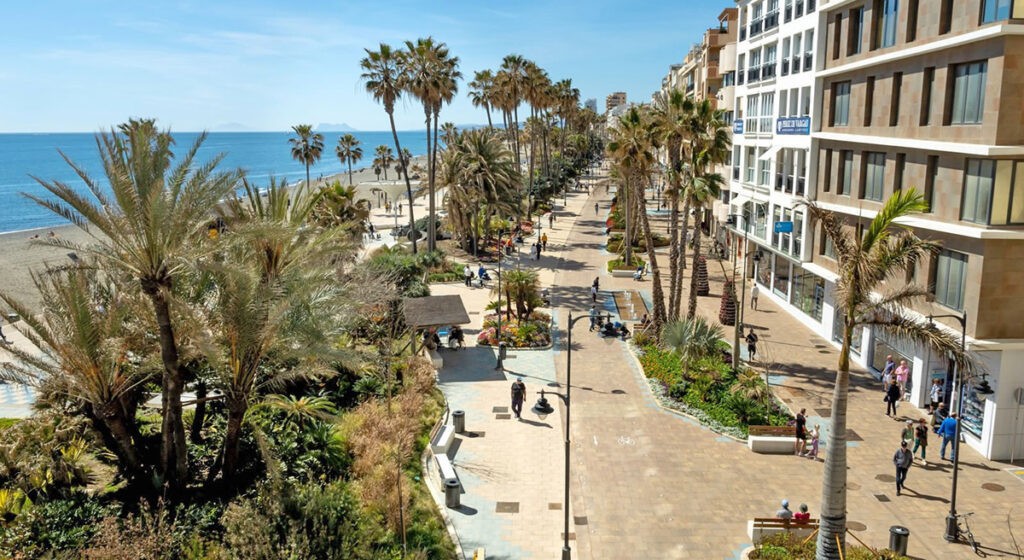 - Beautiful bright new 2 bedroom, 2 bathroom apartment in Estepona Gardens, which is a development located in the centre of Estepona town. This latest phase was built only 2 years ago in 2023. It is only 5 minutes walk from the historical Old Town and 10 minutes to the beach. Local amenities such as health centres, schools, parks, restaurants, shops and supermarkets are all within a short walk. This modern apartment has an entrance hall, 2 bedrooms, 2 bathrooms, (1 family bathroom with bath & shower, 1 ensuite with shower), separated by a small hall and door, leading to a large bright sitting-room, kitchen, utility room and terrace. It includes a garage space and a storage room. It is south west facing, located inside the complex, on the first floor overlooking the pool and children’s play area. Some of the features include the fitted kitchen and utility room, with all the appliances, air-conditioning hot/cold, solar panels on the roof for hot wáter and full WiFi coverage, amongst others. This first floor apartment is accessible with own key access through secure gates with internal intercom, via lift and stairs. The complex has extensive communal areas and gardens, including a large swimming pool, playground for children, and an outdoor gym.