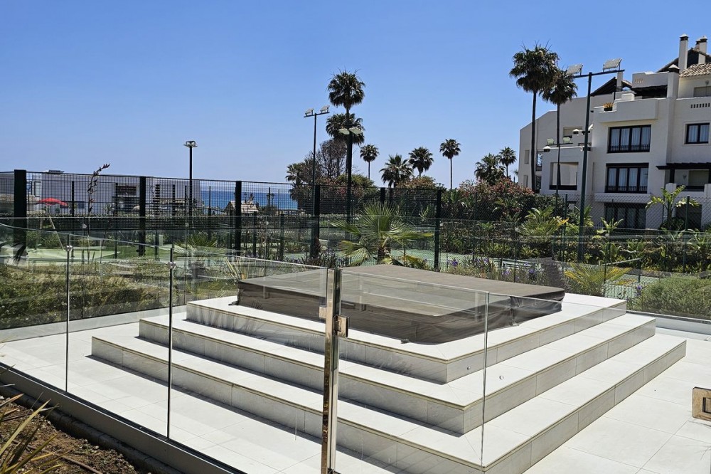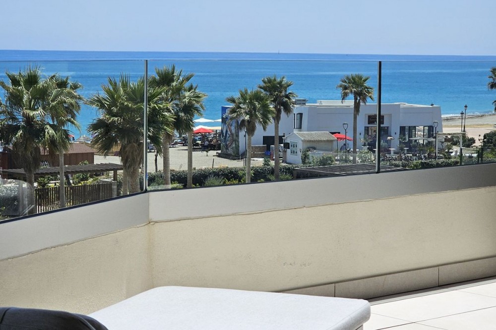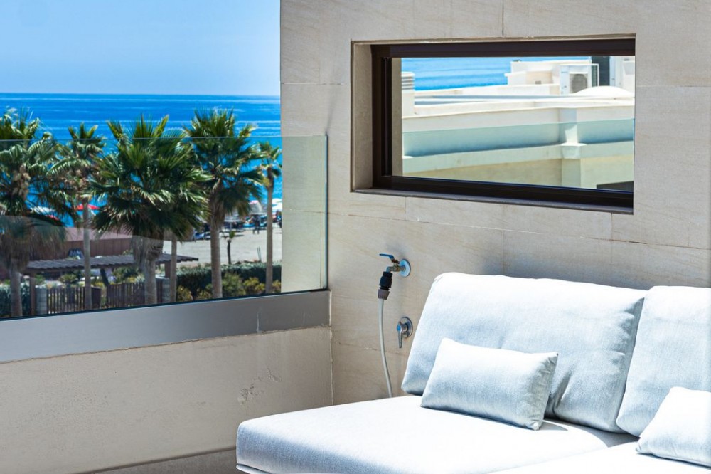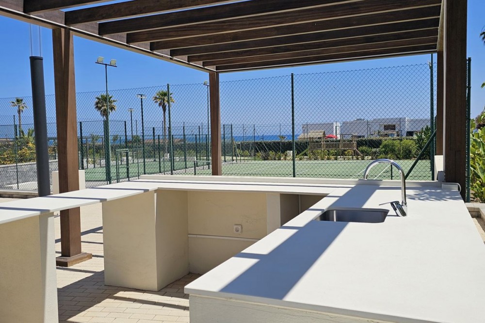 - For those looking to live in the Costa del Sol, Velaya is the perfect place. The development benefits from an unparalleled beachfront location and enjoys, among others, a wide cultural, gastronomic, and sports offering. This is a perfect apartment by the sea, consisting of 2 bedrooms and 2 bathrooms, an open kitchen with an island, and a salon from where you can enjoy a magnificent view of the Mediterranean Sea. The sitting area and the master bedroom are connected to the 40m2 covered terrace. The apartment is located on the 1 floor, south facing. There is an underground garage and store room. This beautiful apartment is fully furnished with the luxury and highest quality furniture. The urbanization has been developed to meet all needs and for you to enjoy a beach-chic lifestyle, luxuriating in nature’s bounty, and finding the peace, and relaxation you are looking for. Apart from the extra-sized heated swimming pool, you can enjoy a tennis/paddle court, outdoor BBQ, Jacuzzi, kids pool, gym pavilion, and kids play area. There are security systems and a concierge. The residential offering stands out for the quality of its materials, exclusivity, architectural features, and enviable beachfront location. In front of the urbanization, there is a new promenade and a few very nice beach clubs to spend your relaxing time there. Extra Description ºsecurity ºkids pool ºjacuzzi ºoutdoor kitchen BBQ pavilion ºtennis court ºpaddle court ºgym pavilion ºkids play area The project that aims to obtain the BREEAM® International Certificate