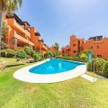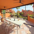 - GROUND-FLOOR APARTMENT WITH LARGE TERRACE AND TOURIST LICENSE NEAR THE SEA. Privileged location in a charming Mediterranean-style complex, just 200 m from the beach and only a 5-minute drive from Estepona and the vibrant Duquesa Marina, where you’ll find all kinds of services, restaurants, and leisure options. This beautiful ground-floor apartment stands out for its brightness, thanks to its southeast orientation, and for its magnificent newly renovated terrace, featuring glass curtains, an outdoor kitchen area, and elegant parquet flooring that adds warmth and style. The property, built with high-quality materials, offers two spacious bedrooms, carefully redesigned lighting that enhances every corner, and a practical anti-limescale system for greater comfort. From the terrace, you can enjoy pleasant views of the lush gardens, the communal pool, and a partial sea view. Located in a quiet and well-maintained community with a swimming pool and large green areas, this apartment also includes a parking space and a storage room. With a **tourist license obtained this year**, it represents an excellent opportunity both as an investment with high rental potential and as a cozy home by the sea. **A must-see — you’ll love it!**