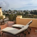 - Opportunity! Penthouse on 1st line Azata Golf in Estepona fully furnished and equipped - ready to move in or rent out. The penthouse os located on the 2nd and last floor, has a built area of 135 sqm with a large south-east facing terrace of 26 sqm. Beautiful views torwards the golf course to the surroundings and the hills behind. Distributed in entrance area leading to the spacious living room with open fireplace and outgoing to the large private terrace. New modern kitchen fully fitted and equipped with a utility room beside. High quality and luxury fittings. 2 bedrooms and 2 bathrooms, one en-suite to the master bedroom. Features: creme marble floors, marble bathrooms, double glazing, electric sun blinds, aircondition hot/cold, elevator, garage and storage room, fully furnished, built-in wardrobes, video entrance phone, washing machine and dryer, rental license. Gated community with security service, 2 community swimming pools and children's pool, well maintenenced community gardens. Quiet residencial area, but only minutes away from the beaches and short drive to the port and town of Estepona. Minutes away from the new General Hospital of Estepona. The property is fully legal and comes with a holiday rental license. A perfect property for living the whole year in or having pleasant holidays as well as an investment opportunity and rental business. Spanish banks are offering up to 70% mortgage on purchase price.