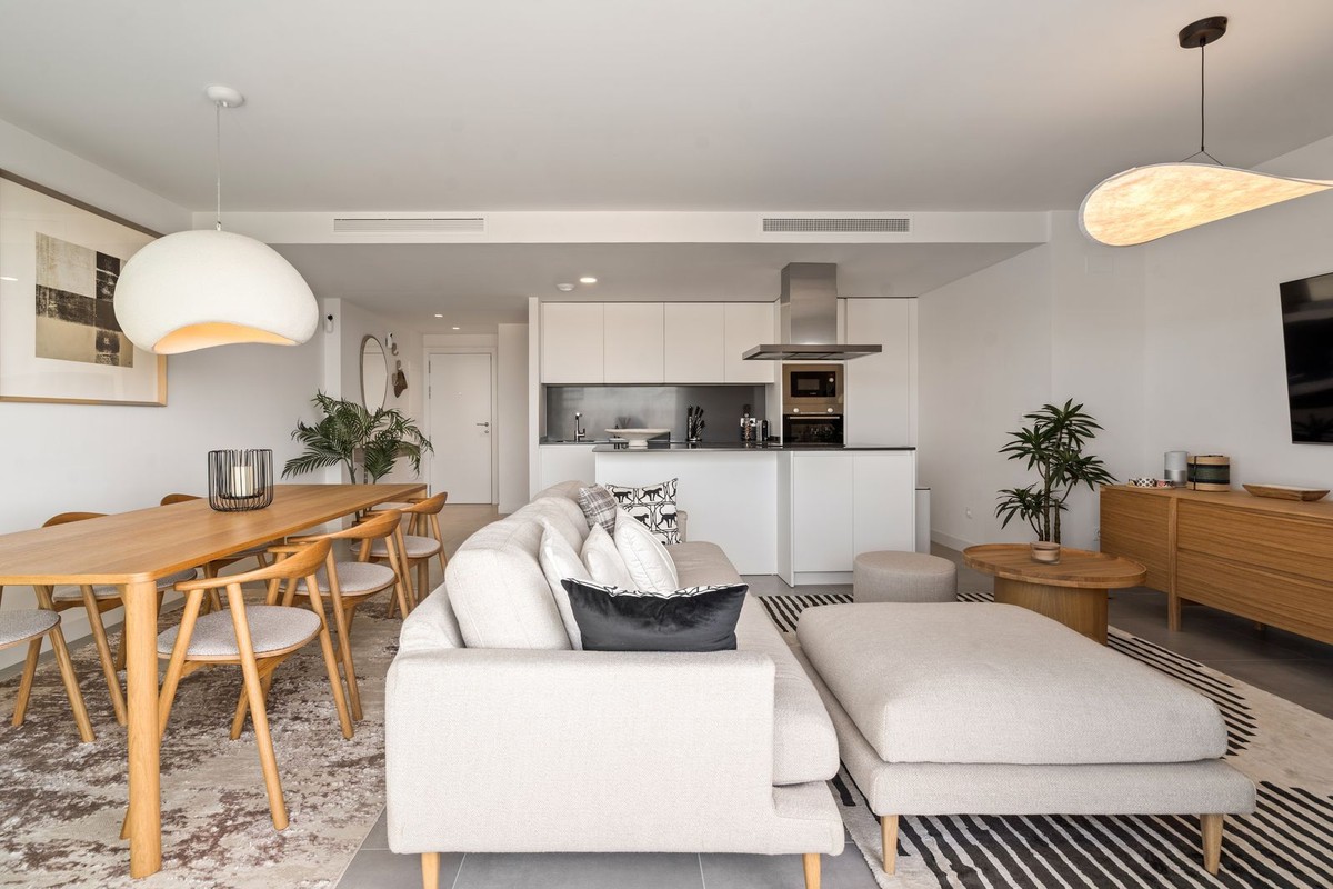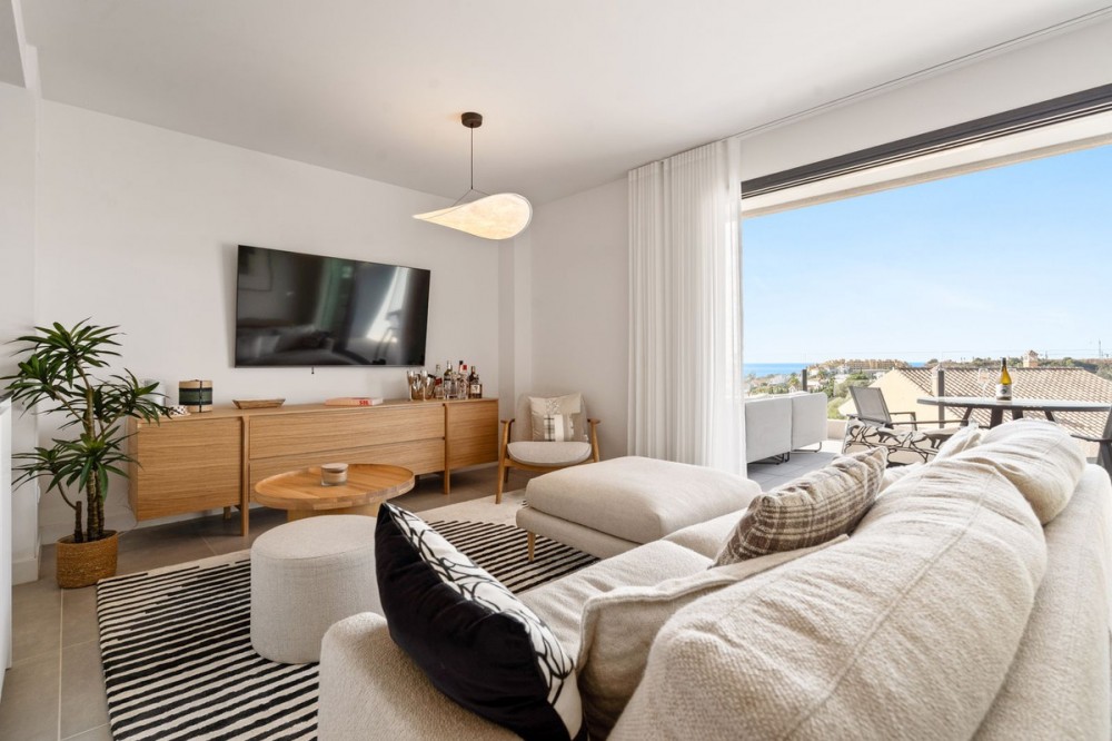 - An exclusive penthouse located in the prestigious residential complex Oasis 325 Phase 2 in Estepona (Málaga). This development is renowned for its modern architecture, peaceful surroundings, and high-quality facilities. This penthouse combines elegant design, maximum comfort, and breathtaking views of the Mediterranean Sea, the surrounding mountains, and the natural park Selwo Aventura. Layout and finishes: The apartment offers three bedrooms with built-in wardrobes and two stylish bathrooms – one with a bathtub and one with a shower. The open-plan kitchen is fully fitted with integrated appliances and connects seamlessly to the bright living and dining area, where large sliding doors lead to the spacious terrace. Thanks to its large windows, the entire property enjoys abundant natural light and panoramic views. Finishes are of the highest standard, featuring a luxurious interior, quality materials, and great attention to detail. The penthouse also includes a washing machine and tumble dryer, as well as central air conditioning. Outdoor area: The generous terrace offers full privacy and stunning views of the sea, the mountains, and the lush Selwo park — the perfect place to relax and enjoy the sun and scenery throughout the day and at sunset. Extras: The property comes with two underground parking spaces and a large private storage room, providing valuable extra space within this exclusive complex. Complex facilities: Heated indoor swimming pool Fully equipped gym Wellness area with sauna and Turkish bath Modern coworking space Landscaped gardens and outdoor pool.