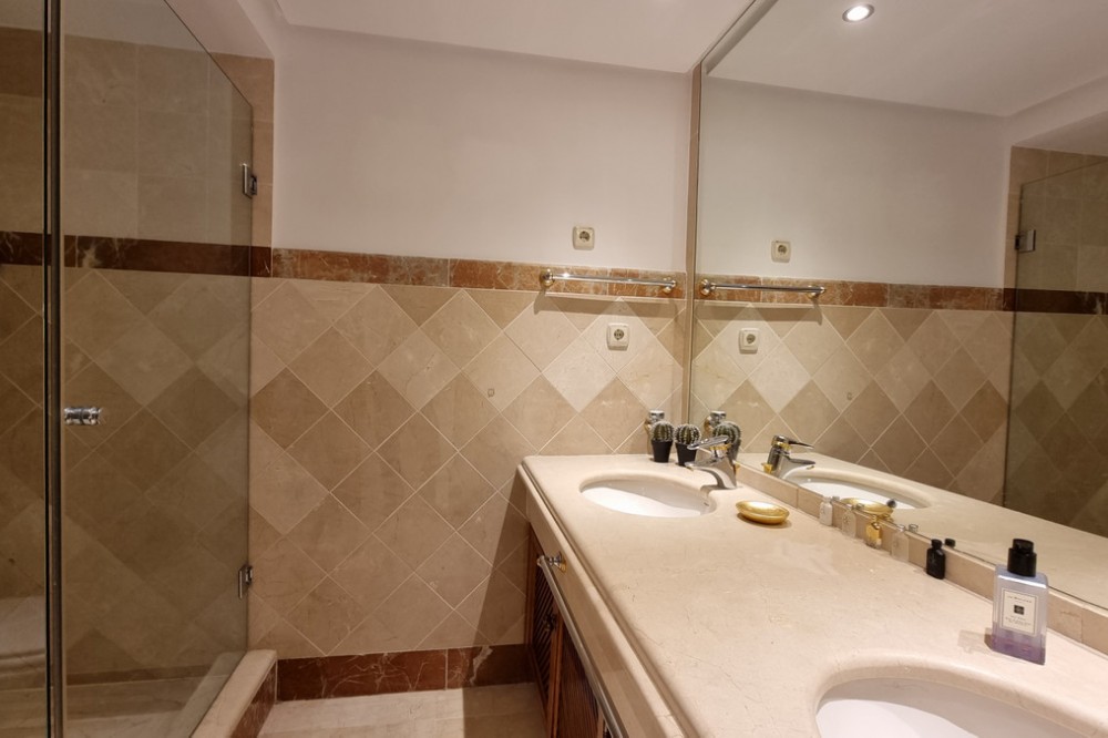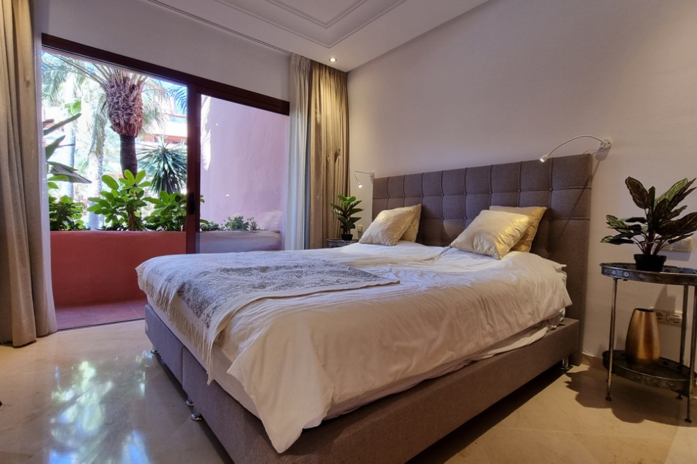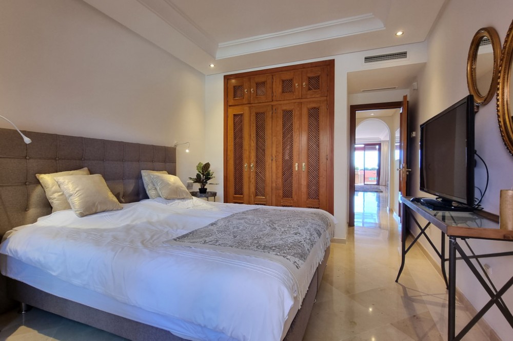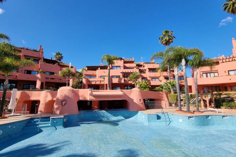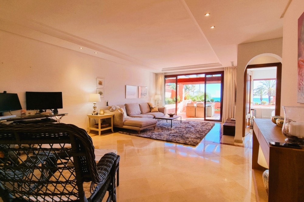 - Estepona – Beachfront Luxury in a 5-Star Resort- CABO BERMEJO Experience coastal living at its finest with this beautiful and spacious 2-bedroom, 2-bathroom first floor apartment boasting breathtaking sea views in one of Estepona’s most exclusive beachfront resorts. The property is thoughtfully laid out and features: Elegant entrance hall leading to a fully equipped kitchen with service area A bright and spacious living room with access to a large terrace overlooking the Mediterranean Two generous bedrooms, each with its own private terrace — one facing southeast and the other northwest Designed for comfort, the apartment includes individual hot/cold air conditioning in every room and underfloor heating throughout. A private garage space is also included. Set within a prestigious 5-star resort, residents enjoy lush tropical gardens, swimming pools, ornamental lakes, direct access to the beach, 24-hour security, controlled entry, gym, and sauna. This exceptional property combines luxury, comfort, and an unbeatable beachfront location — a true gem on the Costa del Sol.