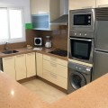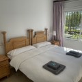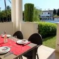 • This apartment is ideal for families with children, as being on the ground floor allows direct access from the terrace to the garden area and the pool. The accommodation consists of a fully equiped kitchen with a washing machine, dishwasher, refrigerator, microwave, oven, and ceramic hob, as well as a large living room with dining area. The master bedroom has two single beds and an en-suite bathroom, while the second bedroom has two single beds and a bathroom with a shower.
