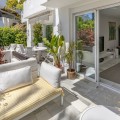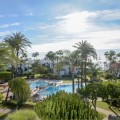 - Alcazaba Beach magnificent apartment with large terrace, garden, swimming pool and partial views to the Mediterranean, in exclusive beachfront urbanization, with direct access to the beach, beach bar and restaurant on site, communal parking, 24 hour security, beautiful tropical gardens very well kept, 6 swimming pools (one heated), tennis and paddle courts. It is located on the outskirts of Estepona, with all kinds of services around and only 5 minutes drive from the marina and 10 minutes from Puerto Banus. The spacious layout includes two large bedrooms with fitted wardrobes, and two bathrooms, the property has been renovated and the living room and kitchen have been distributed in an open plan layout for a feeling of spaciousness. Its large terrace offers incredible views but provides great privacy thanks to the lush vegetation of the area and thanks to its south west orientation it enjoys light all day and magnificent afternoon sun. Great opportunity, the best option on the market, both as a first residence and as a holiday home to enjoy with family or friends. Must be seen!