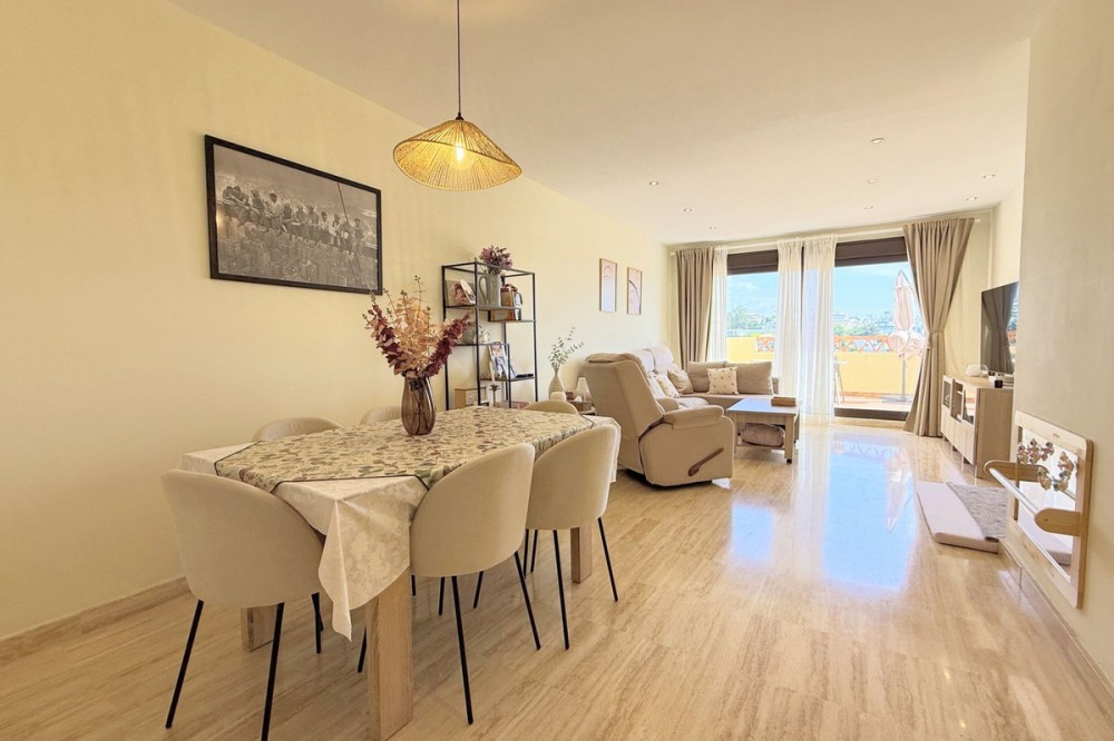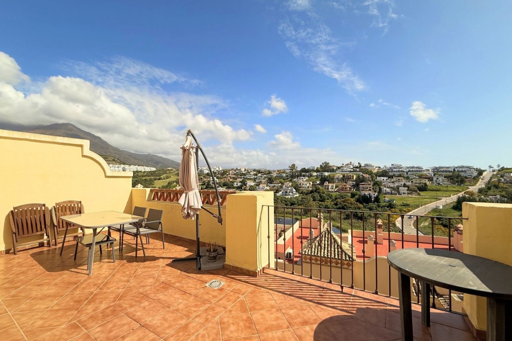 - BEAUTIFUL AND VERY BRIGHT PENTHOUSE WITH MOUNTAIN, GOLF AND SEA VIEWS. We present this fantastic penthouse, an excellent new opportunity on the market that stands out for its great brightness and its pleasant views over the golf course, the mountains and partial sea views. The property offers spaces filled with natural light throughout the day, creating a warm and welcoming atmosphere, ideal both as a permanent residence or as an investment with high rental potential. Its terrace allows you to enjoy the privileged climate and natural surroundings with complete privacy. Located next to the prestigious Azata Golf Club, in a quiet and well-maintained urbanisation, this penthouse is perfect for those seeking quality of life, surrounded by nature and with easy access to all amenities. The complex features communal swimming pools, ideal for enjoying all year round. In addition, the property includes a parking space and storage room, providing extra comfort and practicality. A perfect home for those looking for a bright property with good qualities, pleasant views and a private setting, ideal both for living and investing.