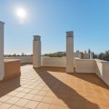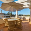 - Spacious penthouse in Dunas Green, corner unit. Exclusive corner penthouse in Dunas Green with a total of 175 m² of terraces. The main terrace faces southwest, enjoying morning sun thanks to the corner position and sun for most of the day, while the rooftop terrace gets sun all day. The property features 3 bedrooms, 2 bathrooms, and 1 guest toilet. Two covered parking spaces located next to each other. Well maintained and sold furnished. The community offers a beautiful pool, two padel courts, and spacious, well kept green areas, especially around the pool. Just a 15 minute walk to the sea.