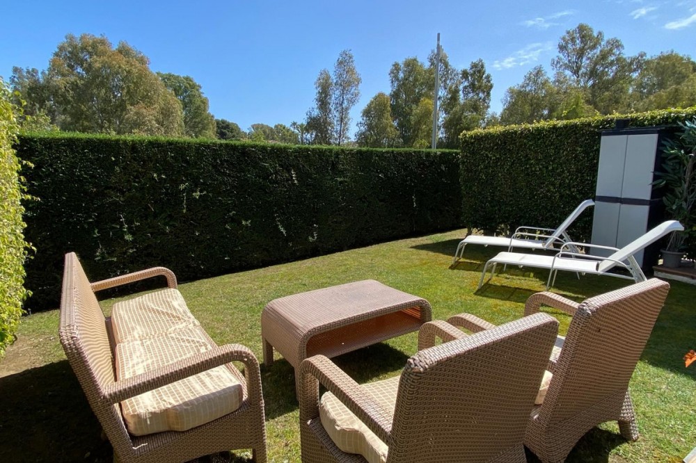 - Ontdek de mediterrane levensstijl in dit spectaculaire appartement met twee slaapkamers op de begane grond, gelegen in het prestigieuze Cortijo del Mar-complex, een oase van rust. Gelegen aan de nieuwe Gouden Mijl van Estepona, op slechts een paar minuten van Puerto Banús, Marbella en het centrum van Estepona. Een gelijkvloers appartement met twee slaapkamers en een eigen tuin, waarin klassieke Andalusische architectuur gecombineerd wordt met een eersteklas, eigentijds interieur. De indeling bestaat uit een entreehal die toegang geeft tot de ruime woon-eetkamer, een volledig ingerichte keuken met hoogwaardige apparatuur en een aparte bijkeuken, een hoofdslaapkamer met een onlangs gerenoveerde en-suite badkamer en toegang tot een lees- of studeerkamer, een tweede slaapkamer en een onlangs gerenoveerde badkamer met hoogwaardige porseleinen afwerking. De woning beschikt tevens over airconditioning (warm/koud), domotica met elektrische rolgordijnen en een geluidssysteem met luidsprekers in de woonkamer, op het terras en in de slaapkamers. Het hart van dit huis is zonder twijfel de ruime, besloten tuin. Een zonovergoten plek waar privacy en de koelte van het groen de perfecte setting creëren voor dineren in de buitenlucht, rustig lezen of simpelweg genieten van het uitzonderlijke microklimaat van de Costa del Sol. Deze buitenruimte vormt een natuurlijke verlenging van de woonkamer en verdubbelt het gevoel van vrijheid en comfort. Dit appartement op de begane grond is de ideale keuze voor zowel mensen die op zoek zijn naar een rustige, permanente woning als voor investeerders die een gewilde woning zoeken in een van de meest dynamische gebieden aan de kust. Het complex is volledig afgesloten met een hek, meerdere toegangspunten, camerabewaking en een 24-uurs conciërgeservice. De gemeenschappelijke ruimtes beschikken tevens over een spectaculair zwembad in lagunestijl, omgeven door tropische tuinen, en een exclusieve bar-restaurant aan het zwembad. Omgeven door de beste golfbanen in de omgeving (El Paraíso, Atalaya en Guadalmina). Op steenworp afstand vindt u winkelcentra, prestigieuze supermarkten, internationale scholen en exclusieve strandclubs.