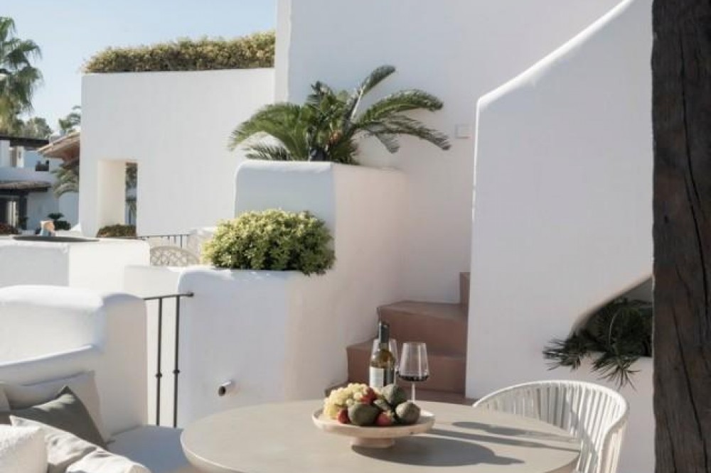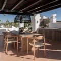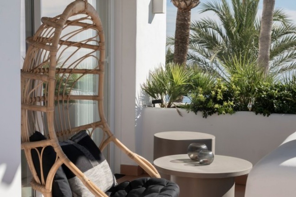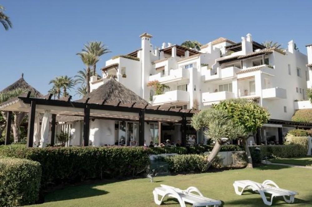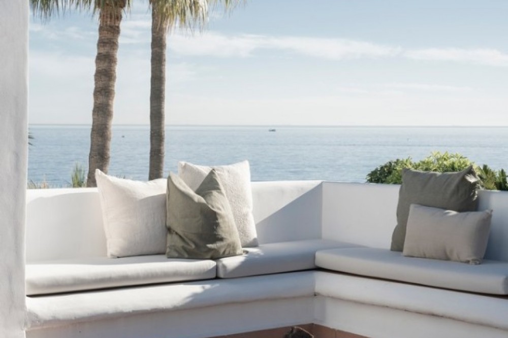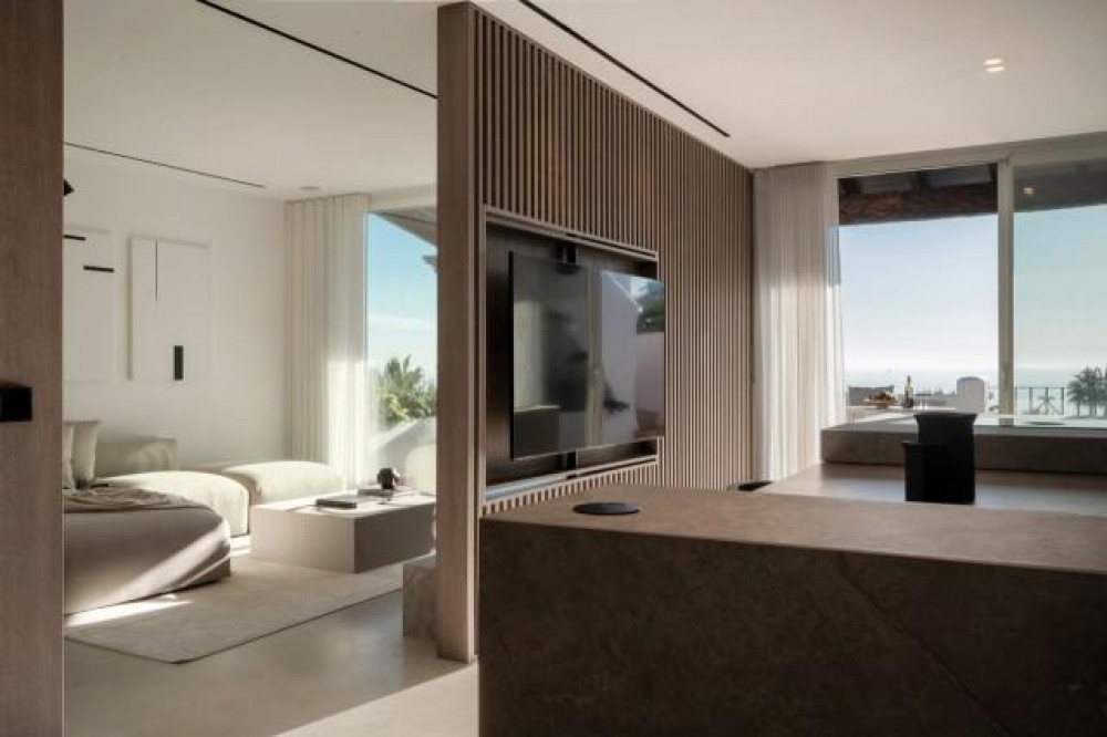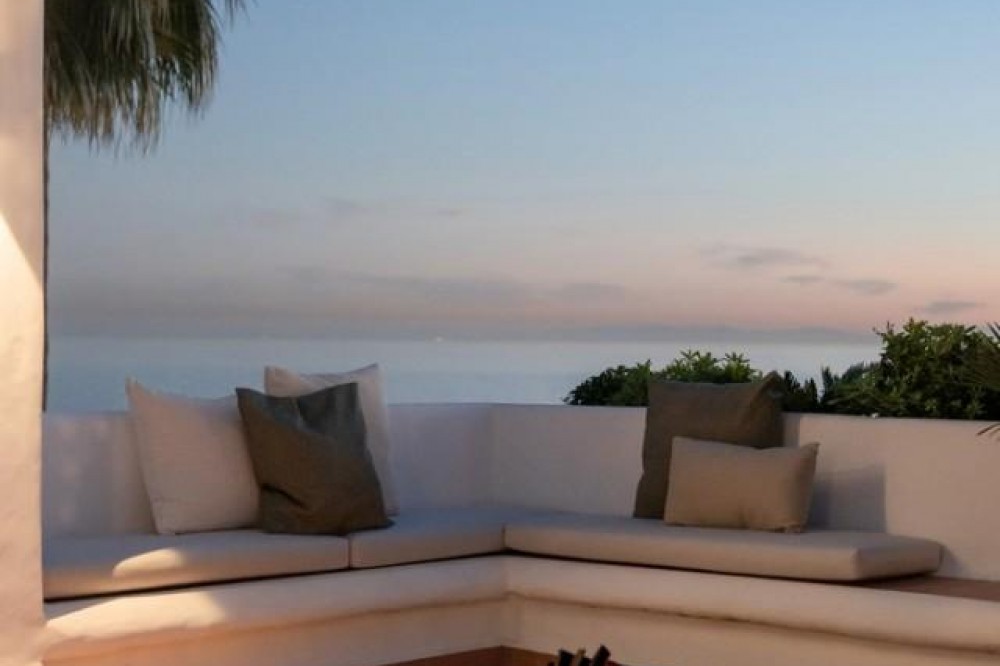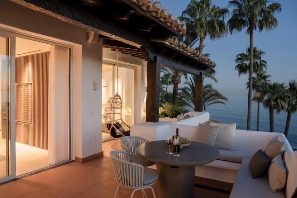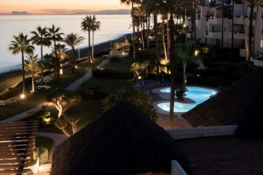 - Exclusive frontline beach residential complex situated in the desirable area of East Estepona featuring direct access to the beach and promenade. This community is conveniently located within walking distance to amenities, only 15 minutes by car from Puerto Banus or about 20 minutes from Marbella. Various amenities can be reached in less than 10 minutes including supermarkets, restaurants, a fabulous marina and the white-washed Old town of Estepona. This modern property is set in a peaceful setting offering absolute privacy, amazing sea and mountain views, lush surroundings and cutting-edge facilities including expansive swimming areas offering 7 pools of which one is heated, award-winning tropical gardens, a sauna and a gym. In addition, there are 3 restaurants, 5 tennis courts, 3 padel courts and a small football pitch, all in a 24hrs security-controlled enclosure. Upon entering the property, you will find an open plan fully fitted kitchen equipped with Gaggenau appliances and a generous designer island incorporating a dining table. The kitchen is partially separated from the spacious living/dining area by a unique custom-designed wooden paneling featuring a rotating flat-screen TV, bringing elegance and functionality to this spacious and bright layout. A delightful feature is floor-to-ceiling triple-glazed sliding glass doors connecting the kitchen and living areas with a large southwest-facing terrace with an outdoor chill-out and dining area enjoying breathtaking panoramic views over the Mediterranean Sea. Furthermore, the property offers 2 spacious beautifully decorated bedrooms featuring wood paneling, fitted wardrobes, modern en-suite bathrooms with underfloor heating and a guest toilet. Upstairs, the amazing rooftop terrace holds a nice exterior kitchen with barbeque and a dining area under the cover, where one can enjoy al-fresco dining and the Spanish outdoor lifestyle. Moreover, there are 2 outdoor showers next to a Jacuzzi and sun lounges area. The solarium is very private and enjoys mountain, sea and garden views. The open and functional spaces are undoubtedly the protagonists of this sophisticated penthouse, which will be a perfect option for home-buyers looking for a luxurious lifestyle as well as an exceptional investment opportunity. AREA Featuring great access to the main road joining Estepona and Marbella, just 10 minutes west from the property, the charming town of Estepona offers plenty to enjoy with the lovely marina area offering a selection of restaurants whilst the quaint old town provides a labyrinth of streets to explore and the beachside promenade is a fantastic place to walk with your friends and family enjoying fabulous views. Estepona is one of the few coastal towns that has succeeded in maintaining its “pueblo” charm and character. Notwithstanding, all the tourist facilities are here, including hotels, restaurants, shops, leisure and cultural activities. The numerous street cafes and tapas bars still serve traditional Spanish delicacies. In the Old town the steep, narrow streets are pedestrianized and decorated with different colored flower pots. It is a delight for photographers. You will find bars and small shops in Estepona, where you'd least expect them, all very inviting and friendly.